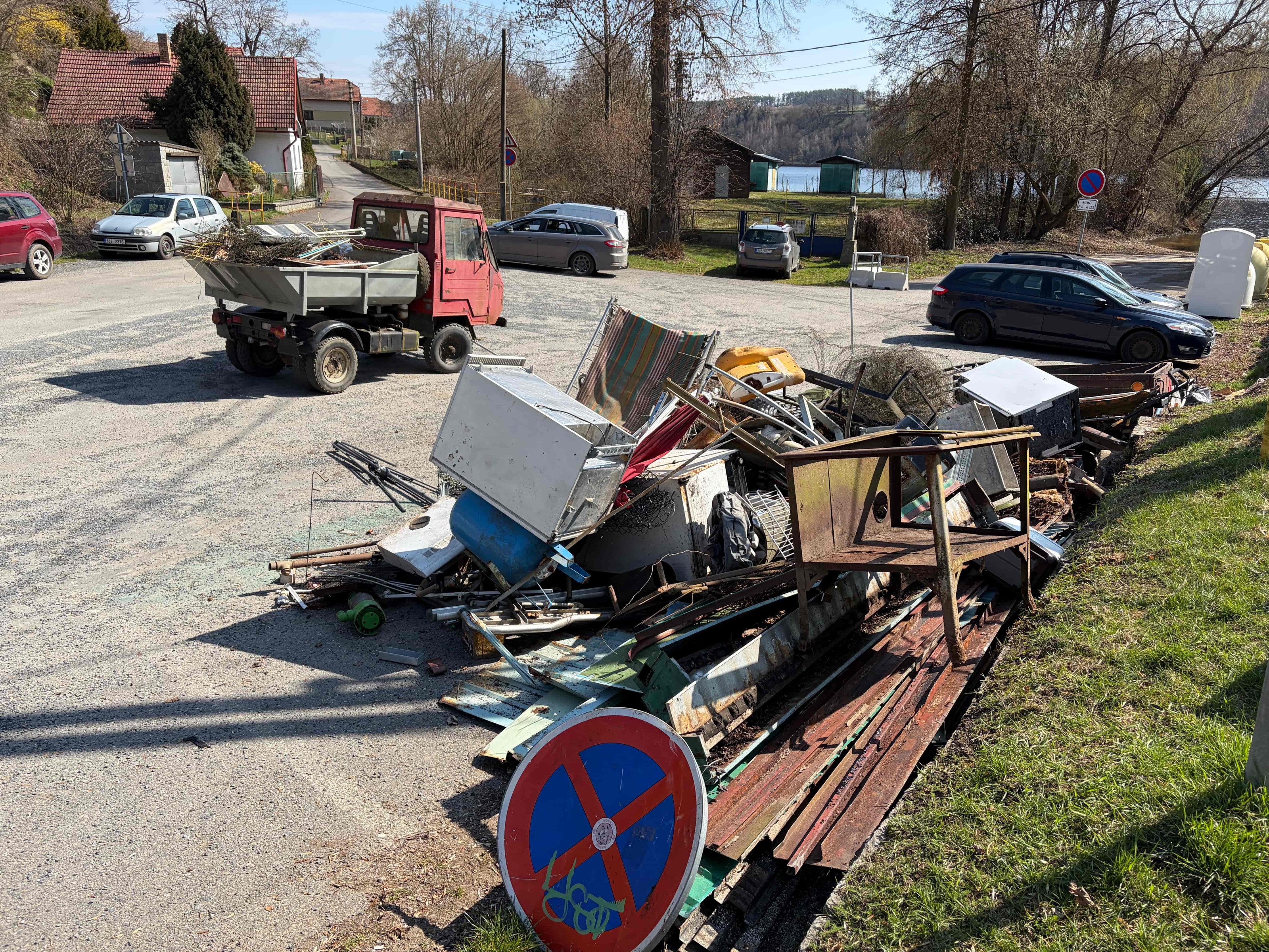 Jedna skupina prošla katastr a posbírala odpadky, které nevychovaní návštěvníci odhazují z jedoucích vozidel, což je nyní velká móda, nebo Nerudovské uloženky, jako stavební materiál, kusy vozidel, starý gauč, jejichž uložení na sběrném dvoře jeho majiteli přišlo příliš nákladné. Druhá skupina připravovala hromadu železného šrotu, který jsme po celý rok pilně sbírali, k naložení a odvozu.